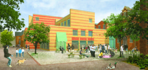 De nieuwe Kunstwerf in het plan DRAMA MACHINE “bestaat uit een familie van huizen, die zijn gegroepeerd als een losse verzameling tegen elkaar aangeschoven individuen. Ieder huis biedt onderdak aan een toneelgezelschap en heeft een eigen verschijning.” het plan is gemaakt door Job Floris, Monadnock, Rotterdam met Monadnock (architectenbureau) / Buro Harro (Ontwerpbureau omgeving) / Pieters Bouwtechniek Delft (adviseur constructies) / Nelissen Ingenieursbureau (adviseur installatietechniek, bouwfysica en duurzaamheid) / Multical Ingenieursbureau (adviseur bouwkosten) / Theatertechniek (adviseur theatertechniek en -logistiek) / Anne Karin ten Bosch (adviseur scenografie).